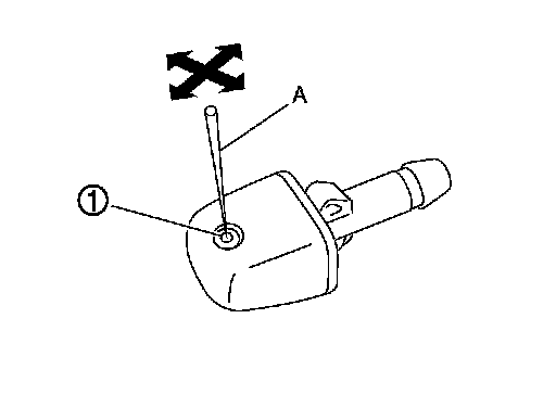 Insert a needle or similar object (A) into the spray opening (1) and move up/down and left/right to adjust the spray position.