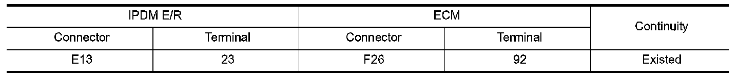 4.Check continuity between IPDM E/R harness connector and ECM harness connector.