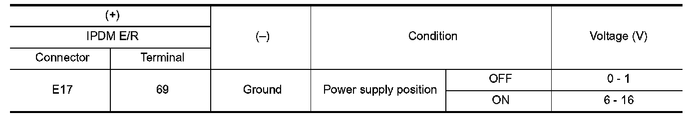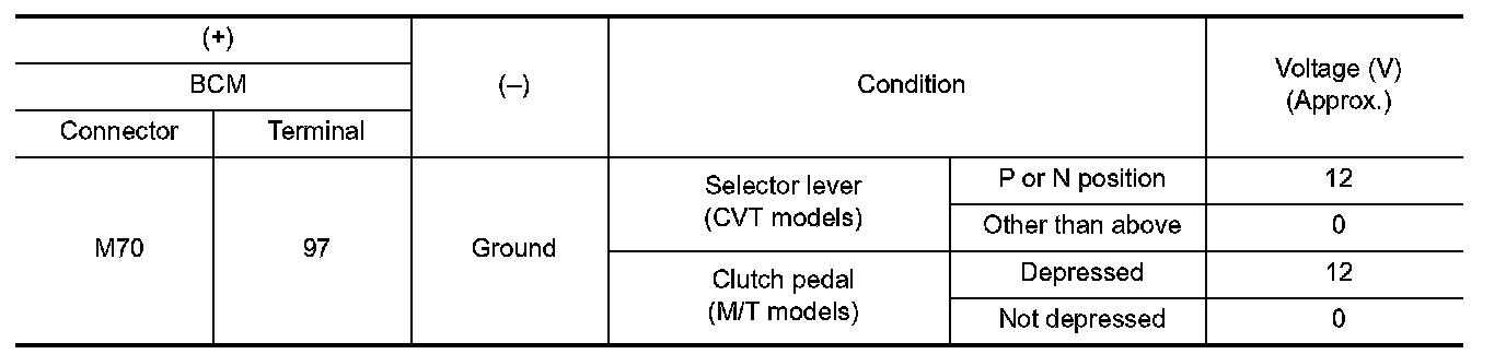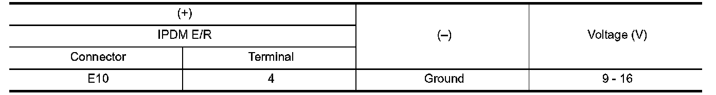 NO- Check harness for open or short between IPDM E/R and battery. With Intelligent Key (M/T models), or With Intelligent Key (CVT models).
