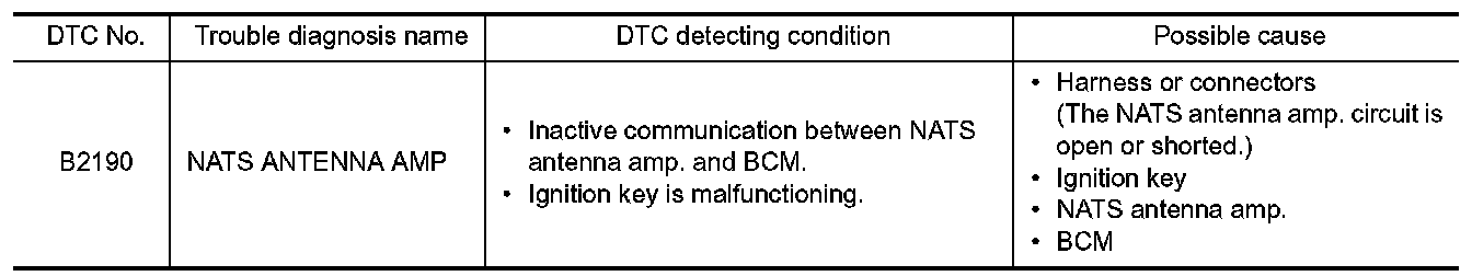 Check NATS antenna amp. Installation. Without Intelligent Key System.