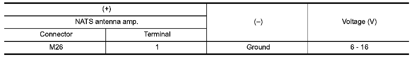 2.Check voltage between NATS antenna amp. harness connector and ground.
