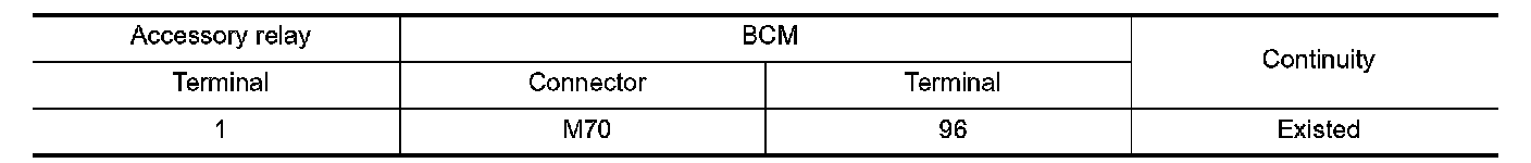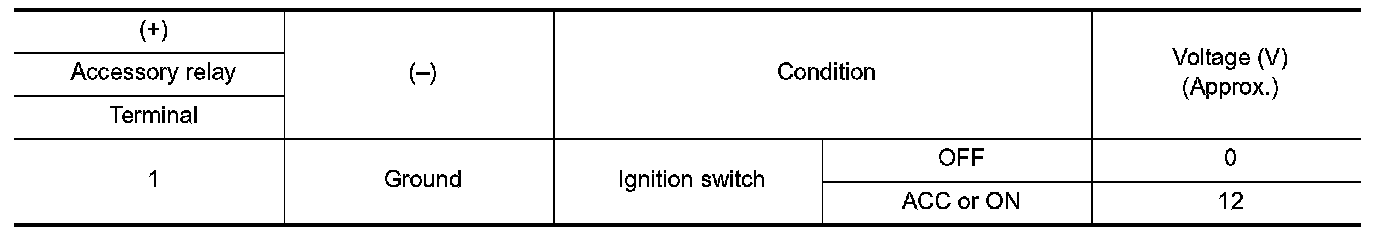3.Check the continuity between accessory relay terminals.
