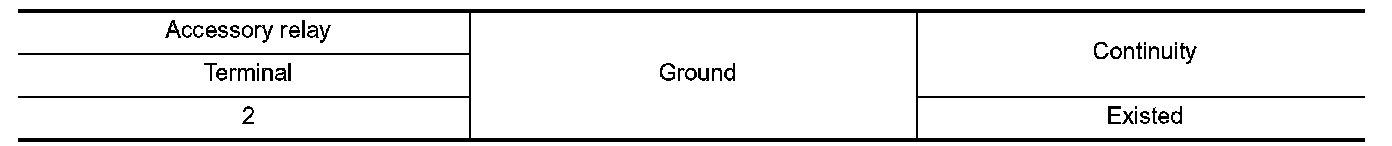 2.Check continuity between accessory relay harness connector and ground.