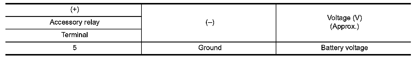 2.Check voltage between accessory relay harness connector and ground.