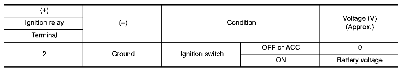 2.Check voltage between ignition relay harness connector and ground.