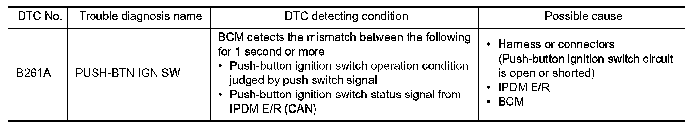 - If DTC B261A is displayed with DTC U1000, first perform the trouble diagnosis for DTC U1000. Refer to