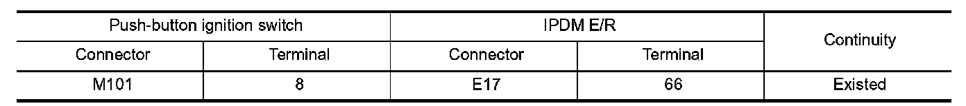 2.Check continuity between push-button ignition switch harness connector and IPDM E/R harness connector.
