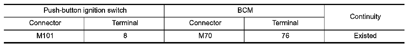2.Check continuity between push-button ignition switch harness connector and BCM harness connector.