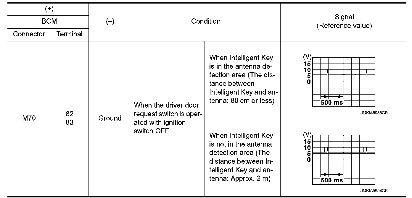 2.Check signal between BCM harness connector and ground using oscilloscope.