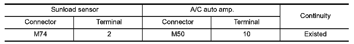 3.Check continuity between sunload sensor harness connector and A/C auto amp harness connector.