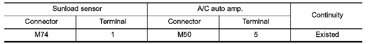 3.Check continuity between sunload sensor harness connector and A/C auto amp. harness connector.