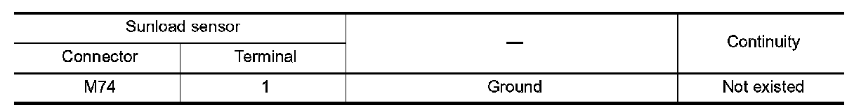 Check continuity between sunload sensor harness connector and ground.