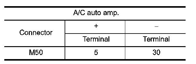 2.Check voltage between A/C auto amp. harness connector and ground. Refer to applicable table for the normal value.