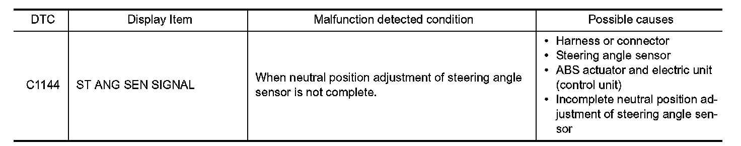 C1144 INCOMPLETE STEERING ANGLE SENSOR ADJUSTMENT