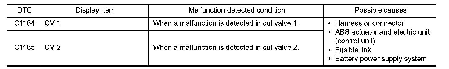 Is DTC "C1164" or "C1165" detected?