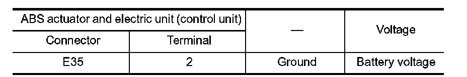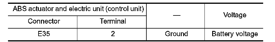 3.Check the voltage between ABS actuator and electric unit (control unit) harness connector and ground.