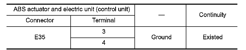 2.Check the continuity between ABS actuator and electric unit (control unit) harness connector and the ground.