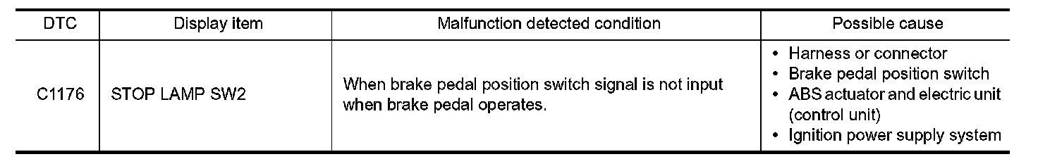 DTC "C1176" may be detected when the brake pedal and the accelerator pedal are simultaneously depressed for 1 minute or more while driving the vehicle. This is not a malfunction.