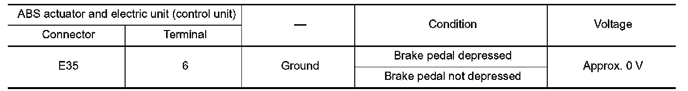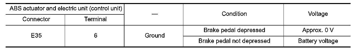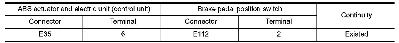 3.Check the continuity between ABS actuator and electric unit (control unit) harness connector and brake pedal position switch harness connector.