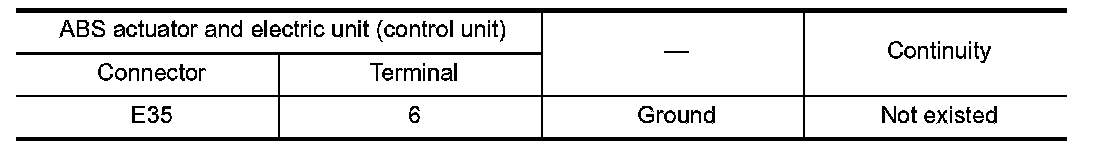 4.Check the continuity between ABS actuator and electric unit (control unit) harness connector and the ground.