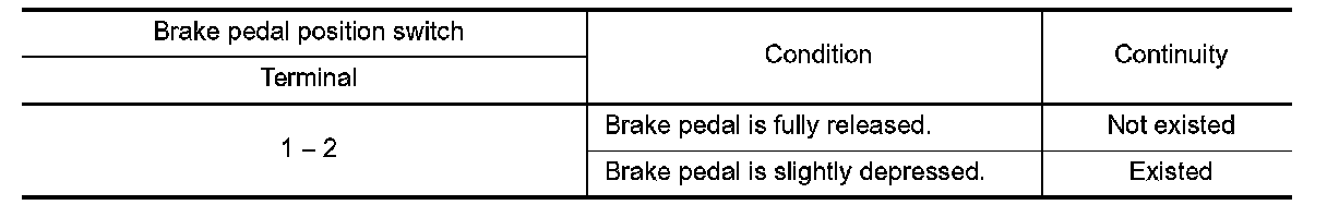 3.Check the continuity between brake pedal position switch connector terminals.