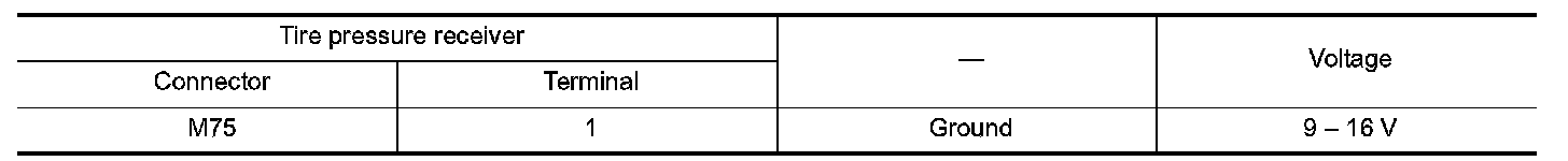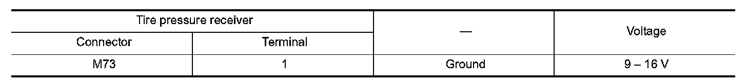 2.Check the voltage between tire pressure receiver harness connector and the ground when the ignition switch is turned ON and OFF.