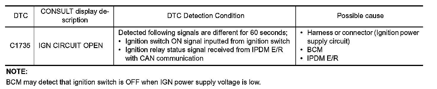 C1735 IGN CIRCUIT OPEN
