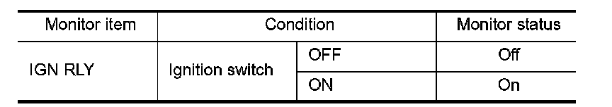 1.Select "IGN RLY" of IPDM E/R data monitor item.