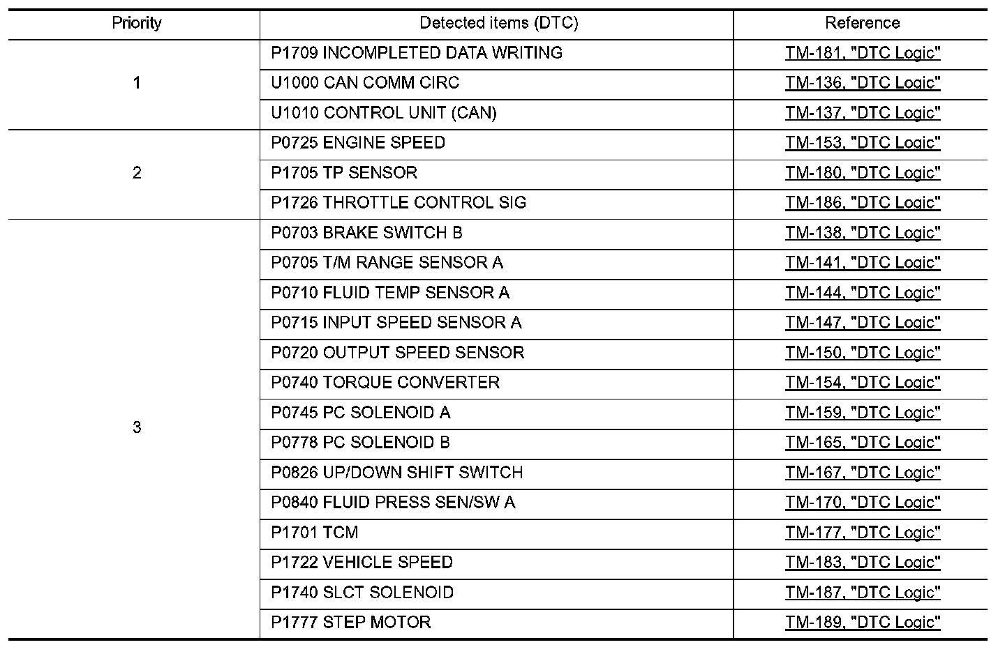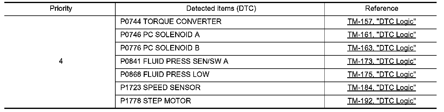 If some DTCs are displayed at the same time, perform inspections one by one based on the following priority chart.