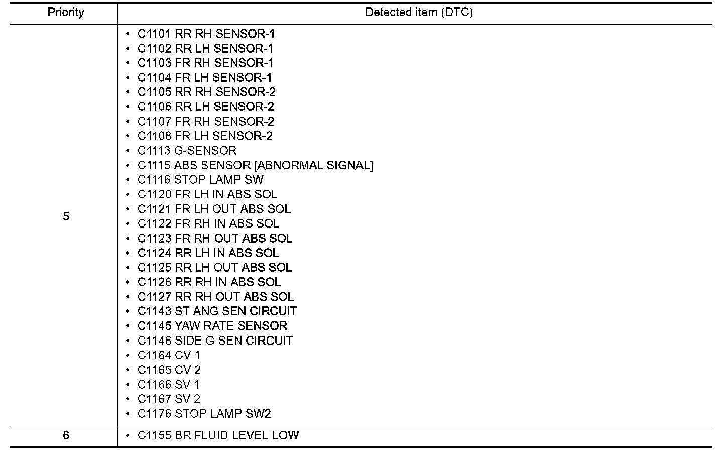 When multiple DTCs are displayed simultaneously, check one by one depending on the following priority list.