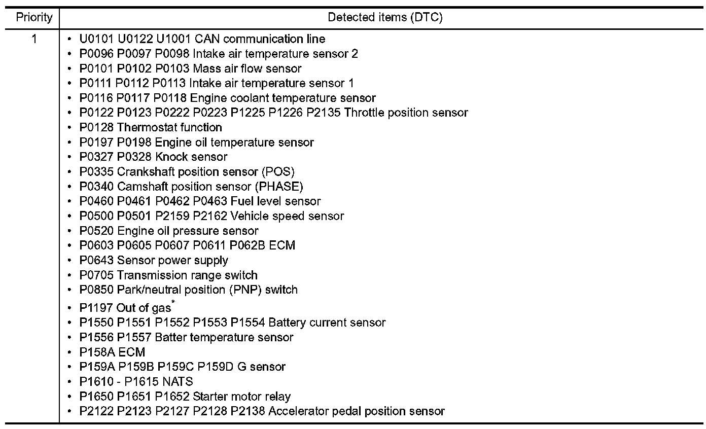 *: If "P1197" is displayed with other DTC in priority 1, perform trouble diagnosis for "P1197" first.