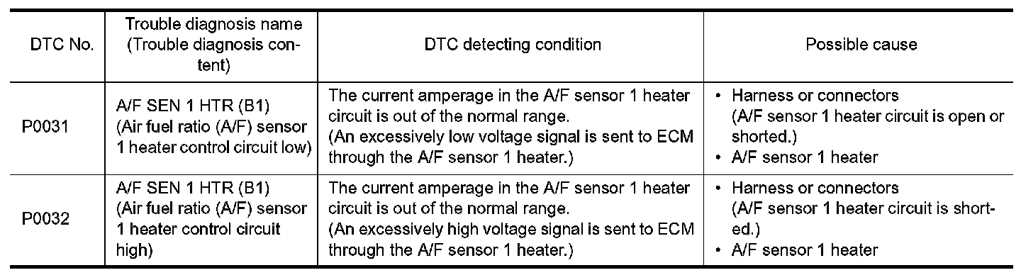 P0031, P0032 A/F SENSOR 1 HEATER