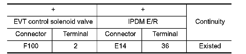 3.Check the continuity between EVT control solenoid valve harness connector and IPDM E/R harness connector.