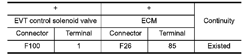 3.Check the continuity between EVT control solenoid valve harness connector and ECM harness connector.
