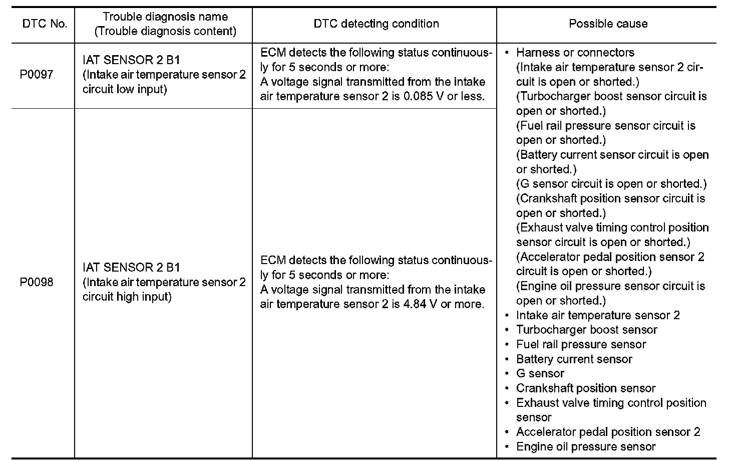 P0097, P0098 IAT SENSOR 2