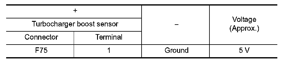 Check the voltage between turbocharger boost sensor harness connector terminal and ground.