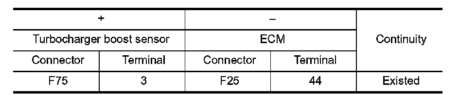 3.Check the continuity between turbocharger boost sensor harness connector and ECM harness connector.