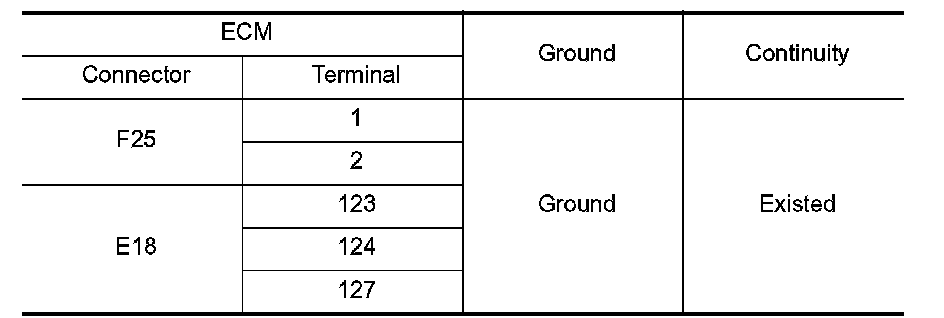 Check the continuity between ECM harness connector and ground.