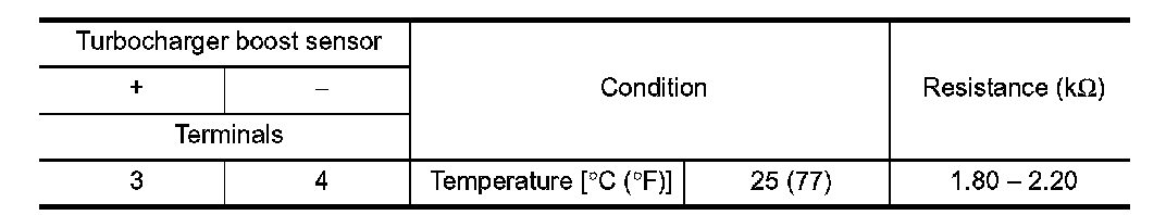 3.Check resistance between turbocharger boost sensor terminals as follows.