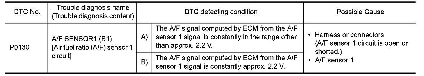 To judge the malfunction, the diagnosis checks that the A/F signal computed by ECM from the A/F sensor 1