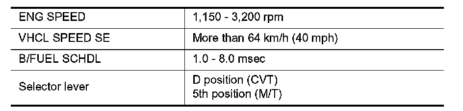 3.Shift the selector lever to the D position (CVT) or 5th position (M/T), then release the accelerator pedal fully until the vehicle speed decreases to 50 km/h (31 MPH).