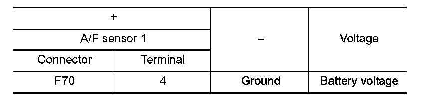 4.Check the voltage between A/F sensor 1 harness connector and ground.