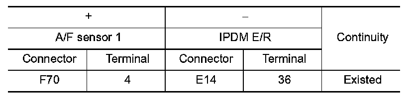 3.Check the continuity between A/F sensor 1 harness connector and IPDM E/R harness connector.