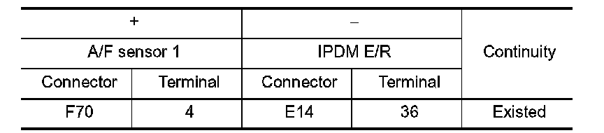 3.Check the continuity between A/F sensor 1 harness connector and IPDM E/R harness connector.