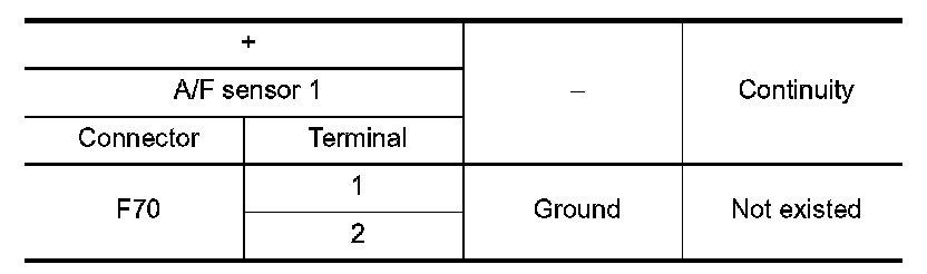 4.Check the continuity between A/F sensor 1 harness connector and ground, or ECM harness connector and ground.