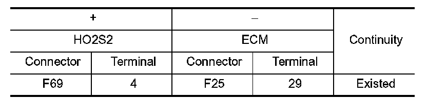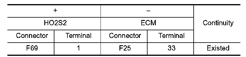 1.Check the continuity between HO-2S2 harness connector and ECM harness connector.