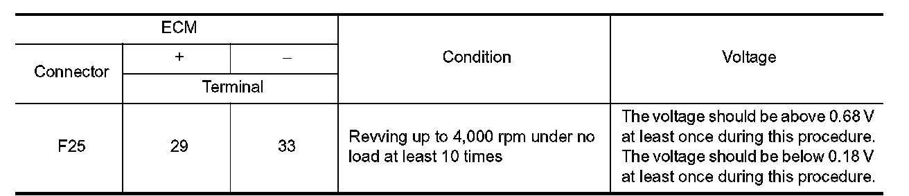 2, ECM monitors whether the switching response of the sensor's voltage is faster than specified during various driving conditions such as fuel cut.