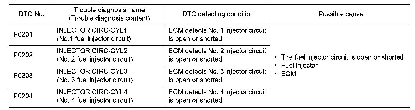 P0201, P0202, P0203, P0204 FUEL INJECTOR