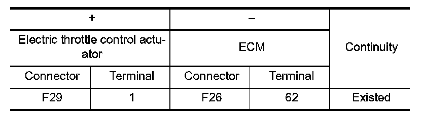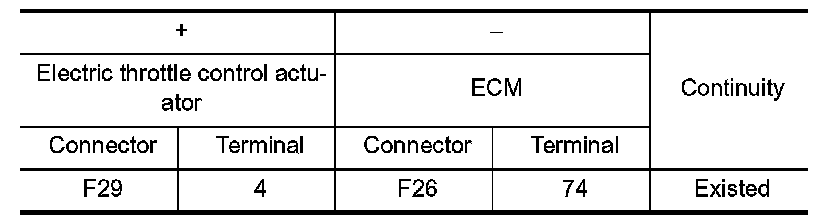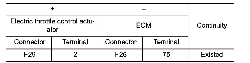 1.Check the continuity between electric throttle control actuator harness connector and ECM harness connector.