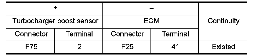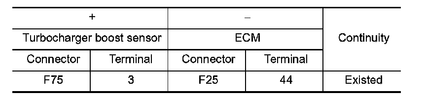 1.Check the continuity between turbocharger boost sensor harness connector and ECM harness connector.